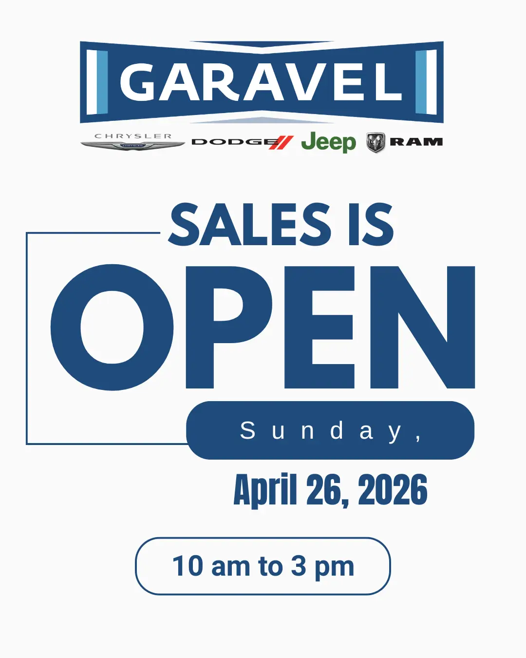 Why do we go out of our way to take this unconventional approach? It's simple really; taking care of you now and doing right by all of our customers is the most powerful way to ensure that you turn to Garavel Chrysler Jeep Dodge RAM first and return to our showroom floor the next time you are in the market for an affordable pre-owned vehicle or the latest Chrysler Jeep Dodge RAM Wagoneer to roll out of the factory.
